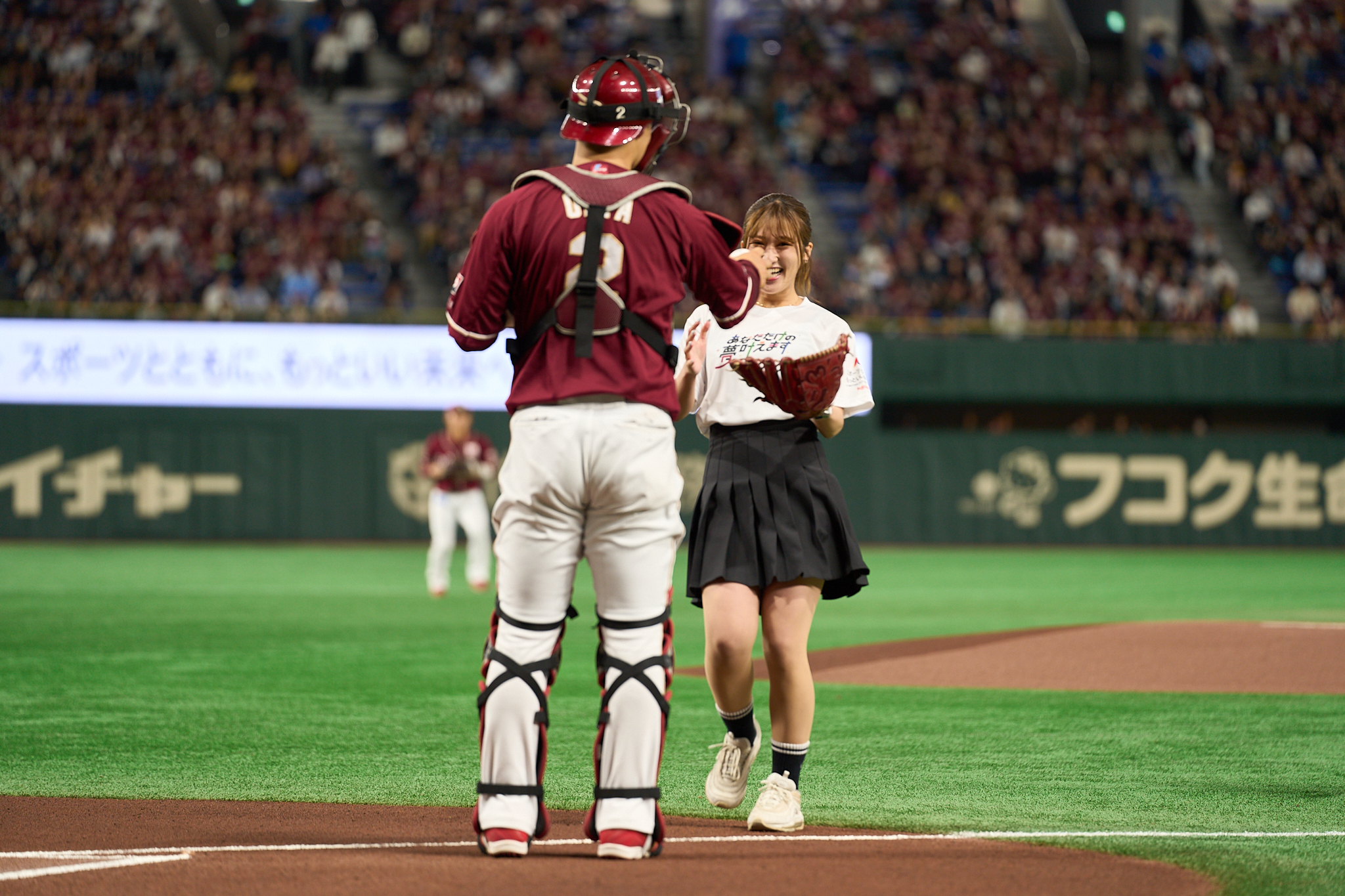 この日、始球式を務めた庄司魅紅さんは野球経験者であり、根っからの楽天イーグルスの大ファン。そんな彼女の夢は、「自分が野球をはじめたきっかけである、元プロ野球選手の岩隈久志選手と同じマウンドに立ってボールを投げる」こと。