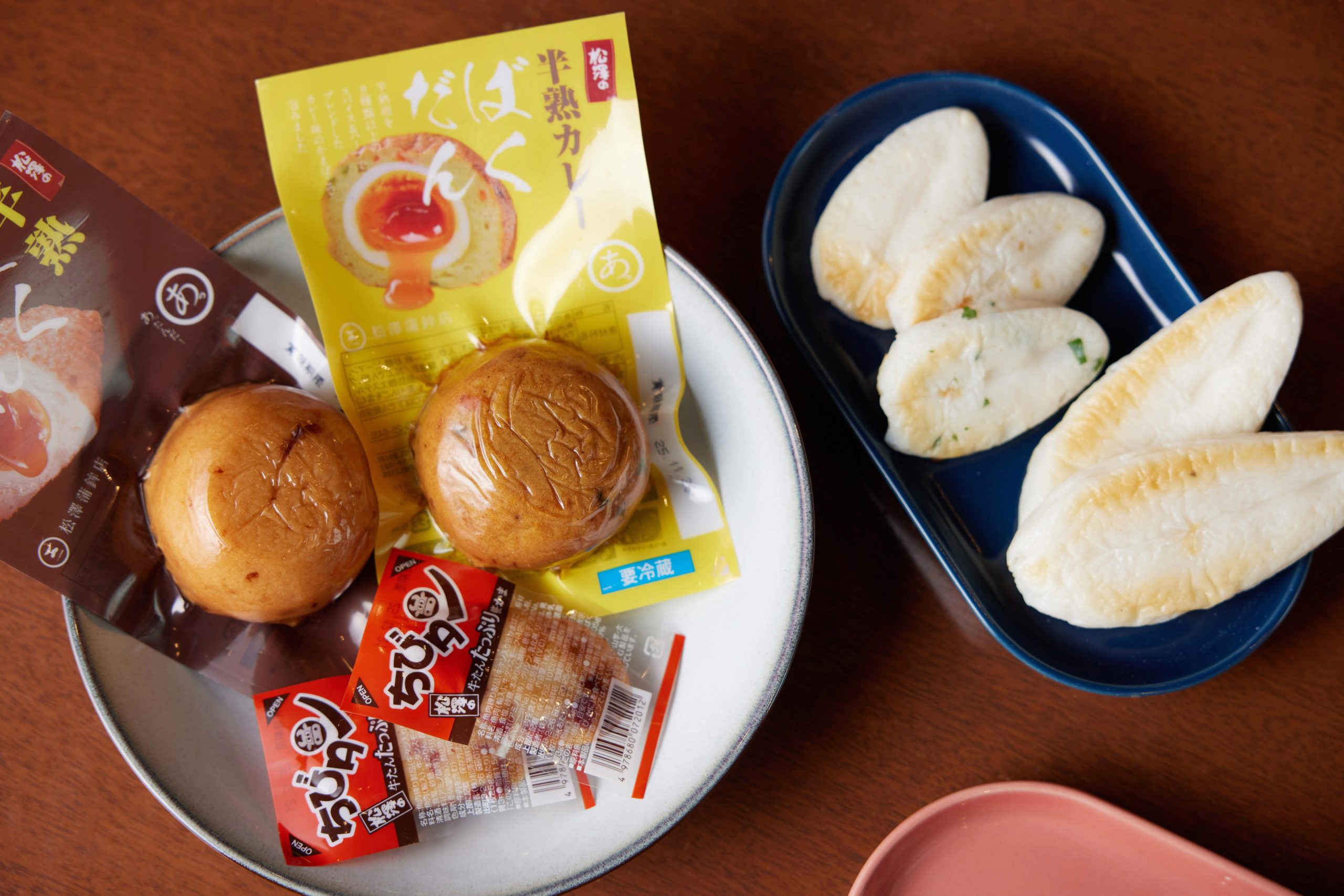 宮城といえば笹かまも外せない。この日は「牛タン」、「たまご」など多彩なラインナップを用意してみたところ、宗山選手はしそ味をチョイス。「タンパク質も豊富な笹かまはベンチ裏にも用意されているので、試合前の補食としてよく食べます。しそ入りははじめて食べましたが、さっぱりしていいですね」。