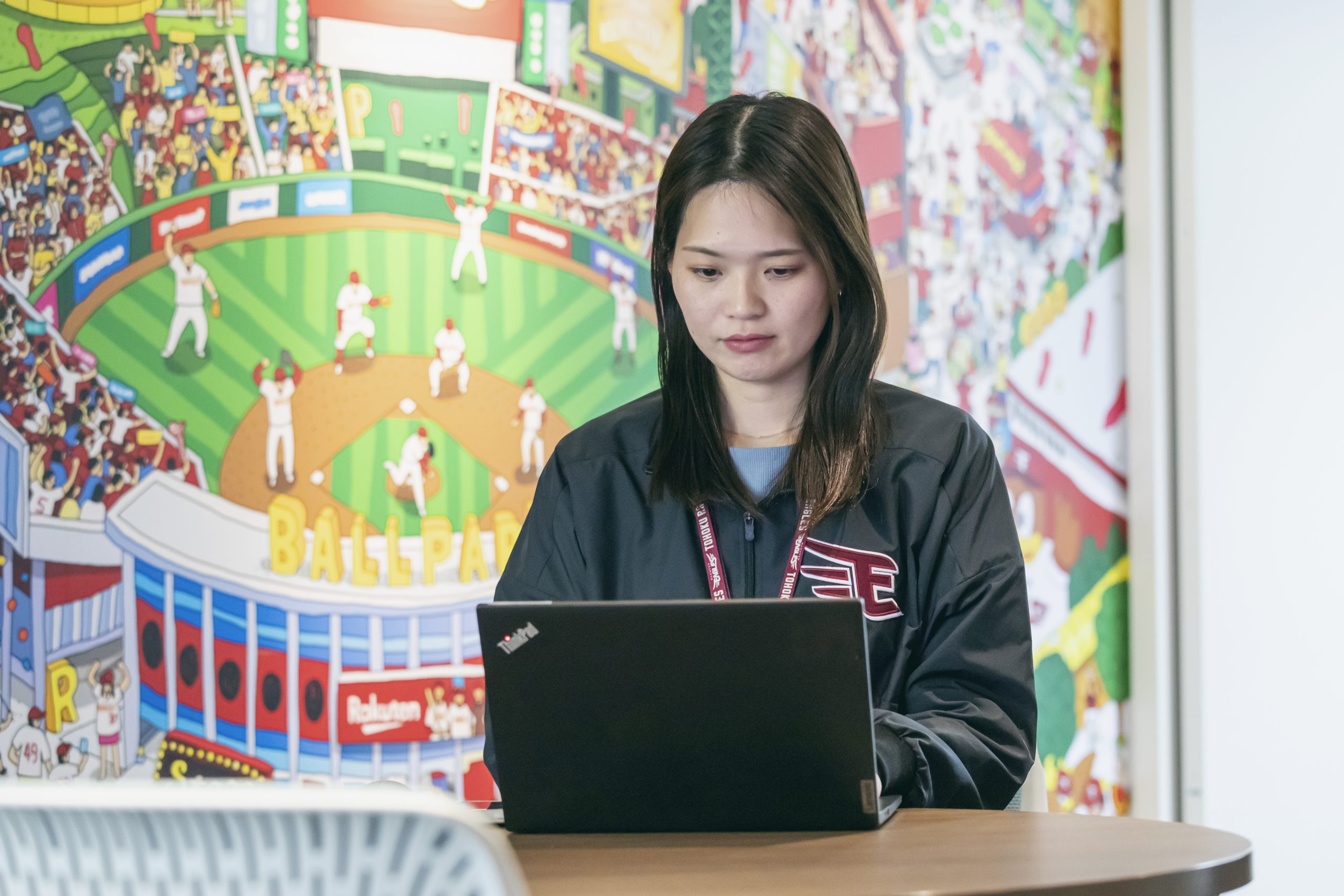 「大学時代までアメリカンフットボール部のトレーナーをしていて、漠然とスポーツ業界に携わりたいなと思って就活をしていました。コロナ禍で球団の採用活動も限られていたなか、楽天野球団とご縁があって入社しました。実はプロ野球のルールもチームも、パ・リーグとセ・リーグの違いすら何も知らない状態で(笑)。しかもずっと関西にいたので、最終面接ではじめて東北の地を踏みました」