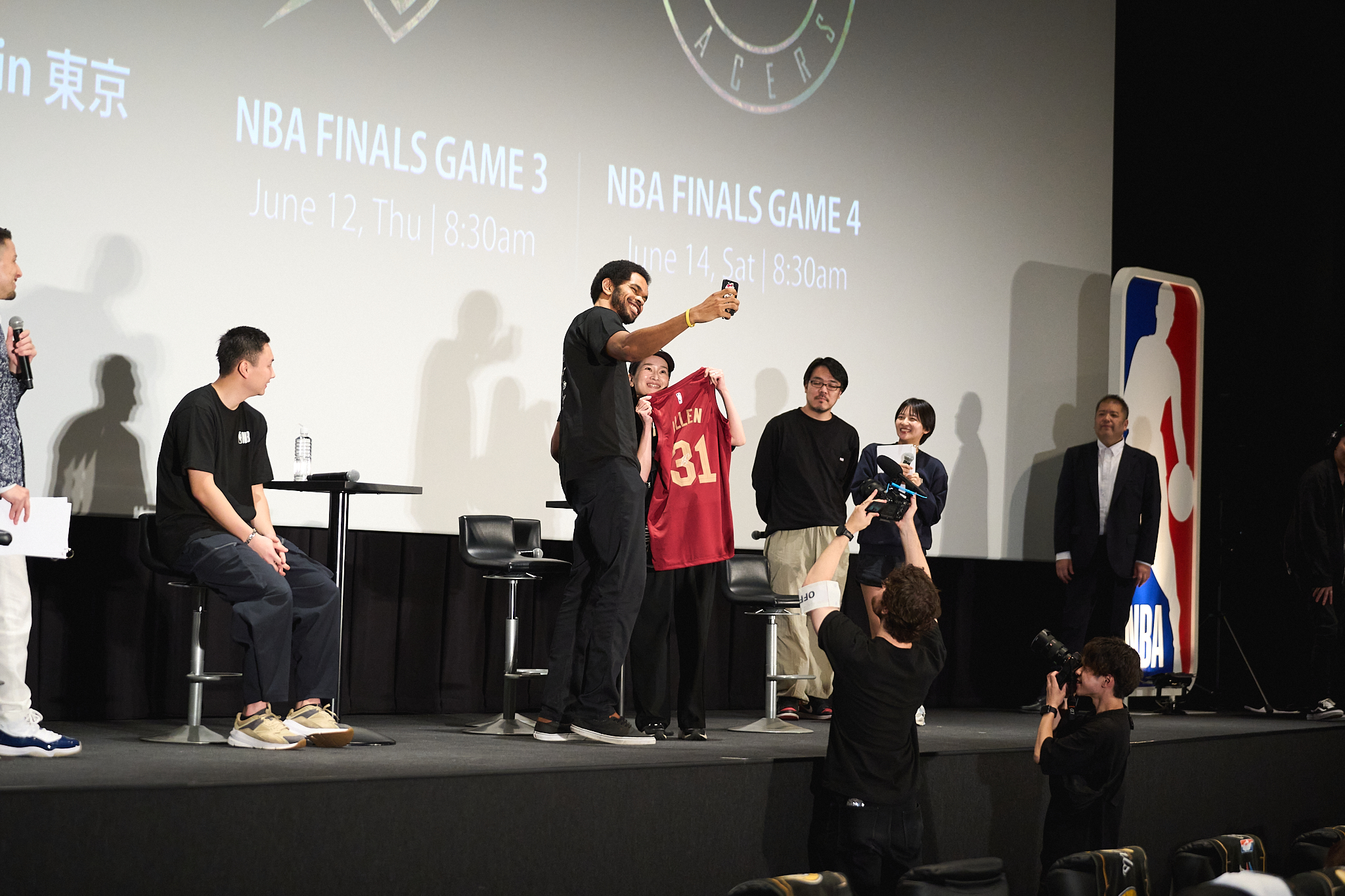 この日、見事勝ち星をあげたのはペイサーズだった。いまだ興奮冷めやらぬ会場に明かりがつき、エンディングムードとともにMCが壇上に姿を現す。しかし、夢のような時間にはまだ続きがあった。ハーフタイムの富永選手に続き、今度はクリーブランド・キャバリアーズに所属する現役NBA選手のジャレット・アレン選手もスペシャルゲストとして登壇した。