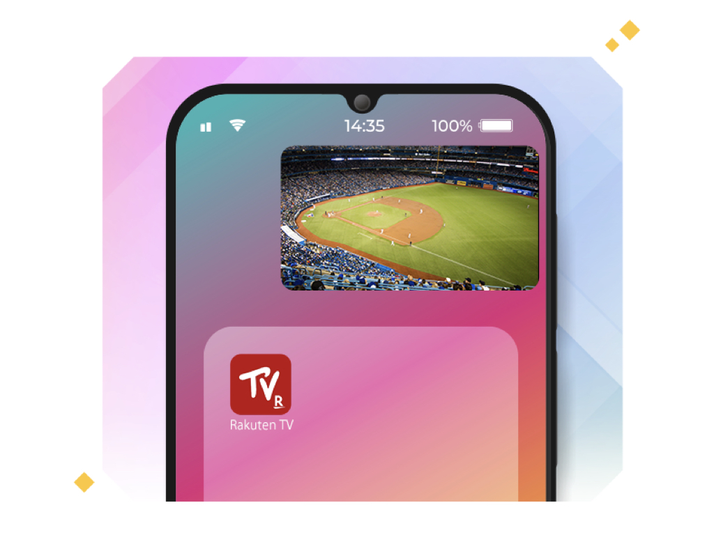 加えてクロスプレーやダイビングキャッチなど、際どいプレーはスロー機能で何度も確認でき、忙しいときは倍速での視聴も可能。Rakuten TVアプリで試合観戦しながら、メッセージアプリやブラウザアプリなど別アプリの操作ができるピクチャ・イン・ピクチャにも対応しており、 「メッセージアプリの返信中に大事な場面が観られなかった」なんていうアクシデントを未然に防いでいる。