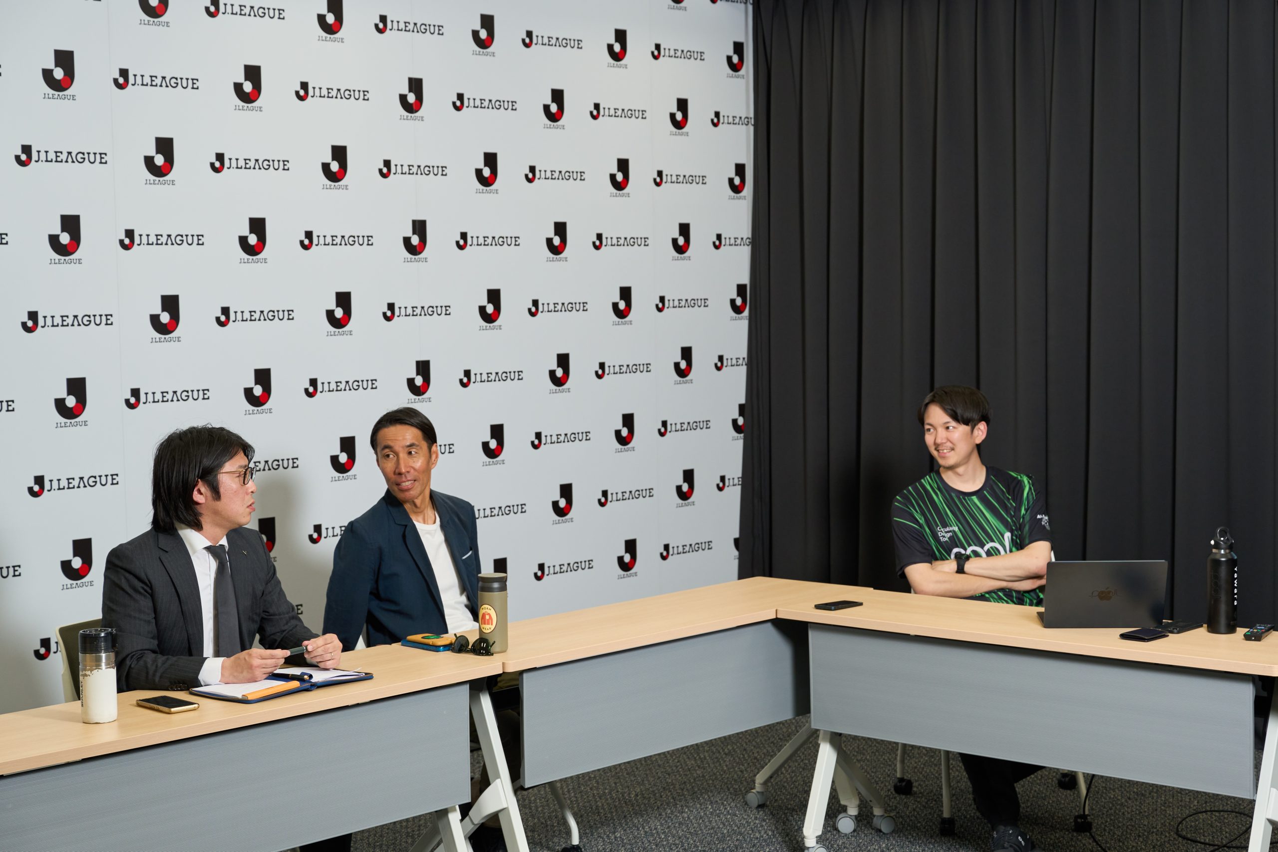 左からヴィッセル神戸 古賀圭紀さん、Jリーグ 辻井隆行さん、RECOTECH 大村拓輝さん。