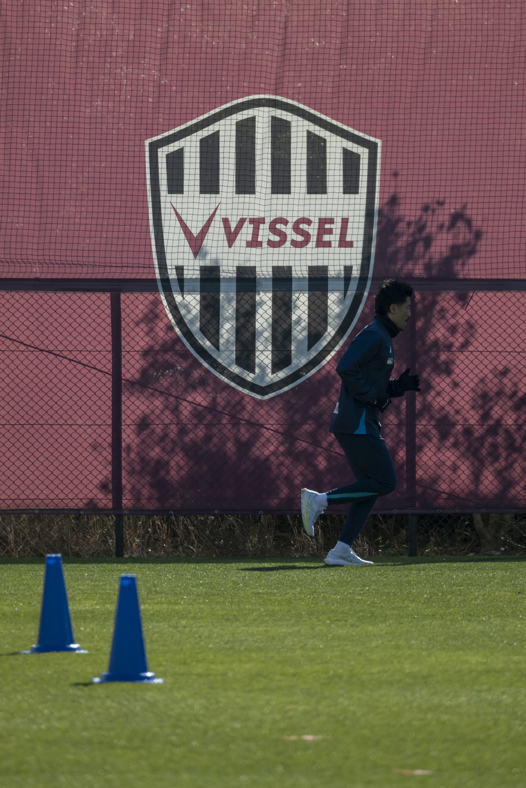 Jリーグ開幕直前の公開練習、ヴィッセル神戸のフィールドプレーヤーたちがボールを使ったトレーニングをする隣のグラウンドに、ゴールキーパーの新井章太はやや遅れて現れた。外周をゆっくりと走ったあと、ストップウォッチを片手に何度もジョグを繰り返す。より速く走るためではなく、スピードを制限するためにタイムを測っているのだろう。転がってきたボールを蹴り返す姿に、術後の順調な回復ぶりを思う。3歳くらいだろうか、ピッチ脇のキッズファンから「あらいしょうた!」と名前を呼ばれ、笑顔で手を振り返している。その微笑ましい光景は、プロとして生きる原動力を想像させた。