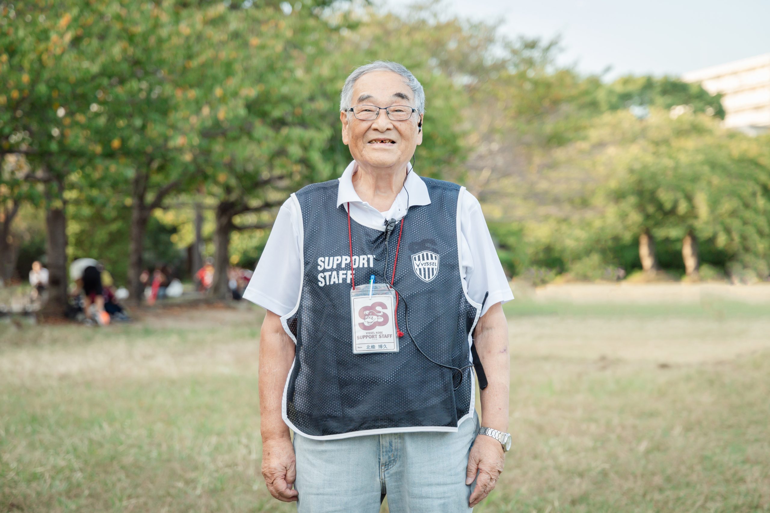 ノエスタを歩いていると、ゴミの回収やファン・サポーターの誘導、障がいを持つ人の案内、入場ゲート管理など、さまざまな場所で働く人たちに気づく。彼らの胸元には「SUPPORT STAFF(サポートスタッフ)」の文字。クラブ職員と密に連携をしながら、ヴィッセル神戸の円滑な試合運営を支えてくれる存在だ。