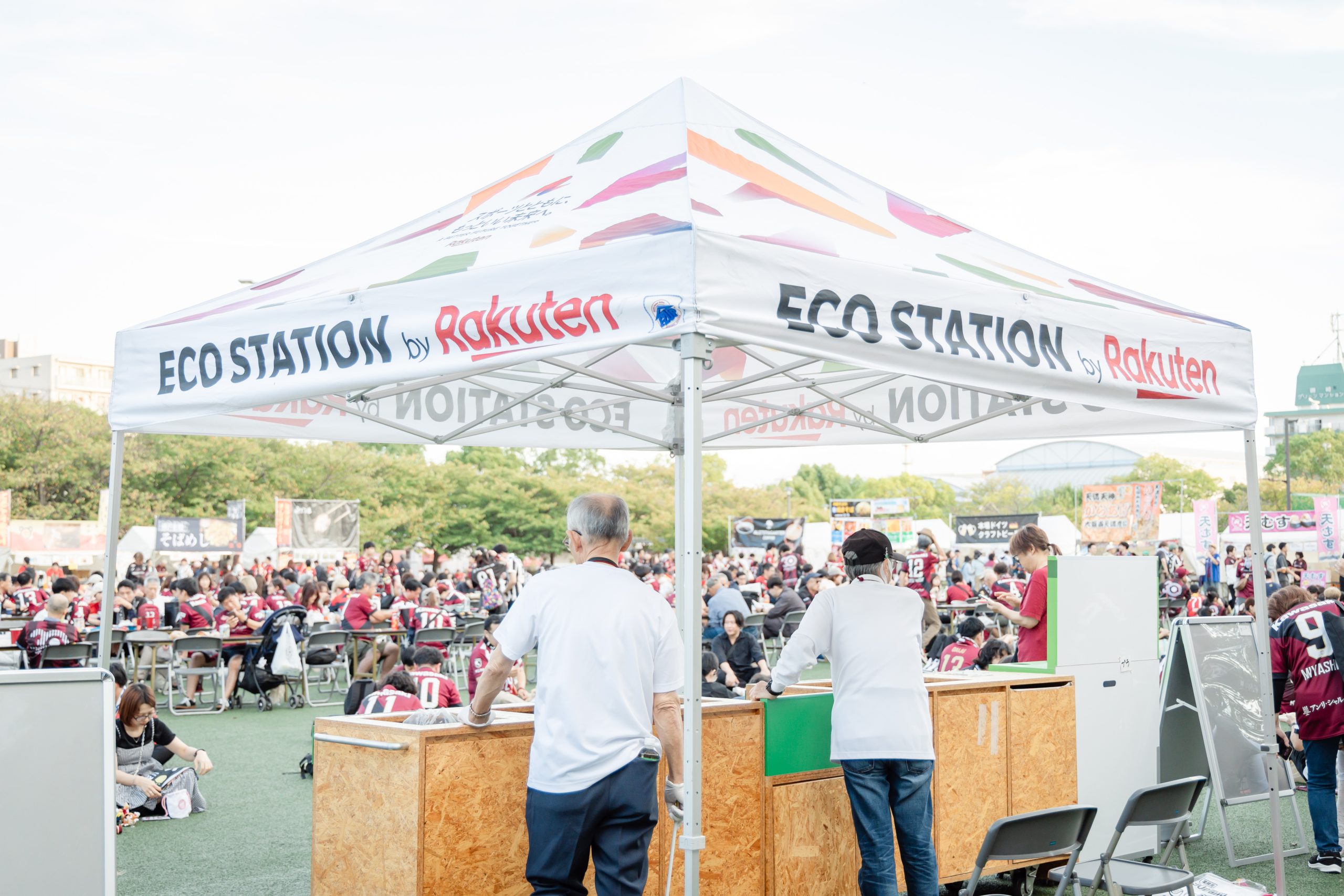たとえばゴミ回収を行うエコステーション。ファン・サポーターに分別を促すのはもちろんのこと、コミュニケーションも大切にしている。「こんにちは!」。ごく普通の挨拶だが、ホーム・アウェイのサポーターにかかわらず、元気よく接することで、来場者たちは1日を気分よく過ごせる。